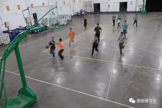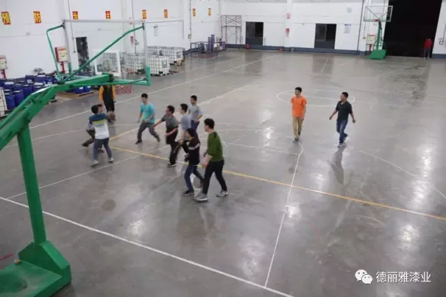 天公不作美下起了雨,也難不倒聰明的小伙伴們。倉庫里,用膠布貼出場地,臨時搭建規(guī)劃的籃球場,也別具一番歡樂。