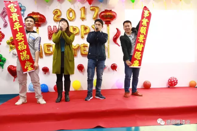 辭舊迎新,高歌奮進(jìn),昨天的業(yè)績已成為歷史,明天的征程任重道遠(yuǎn)。2017廣東德麗雅漆業(yè)有限公司新春年會在歡聲笑語中圓滿落下帷幕,新的一年,我們將攜手并進(jìn),共筑未來!