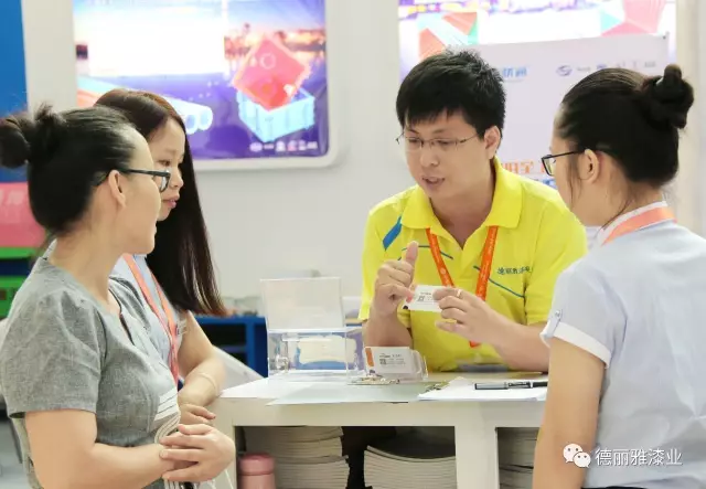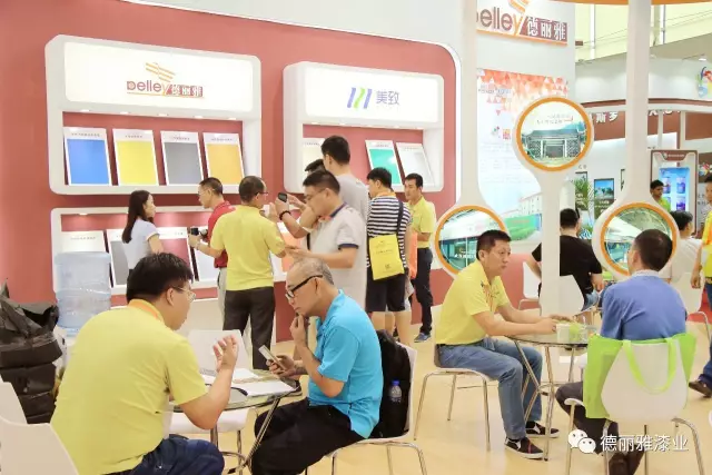 盡管開幕當(dāng)天下著漂泊大雨,展會(huì)還是吸引了眾多商戶前來(lái)觀展。德麗雅漆業(yè)的展位也是人氣爆棚。